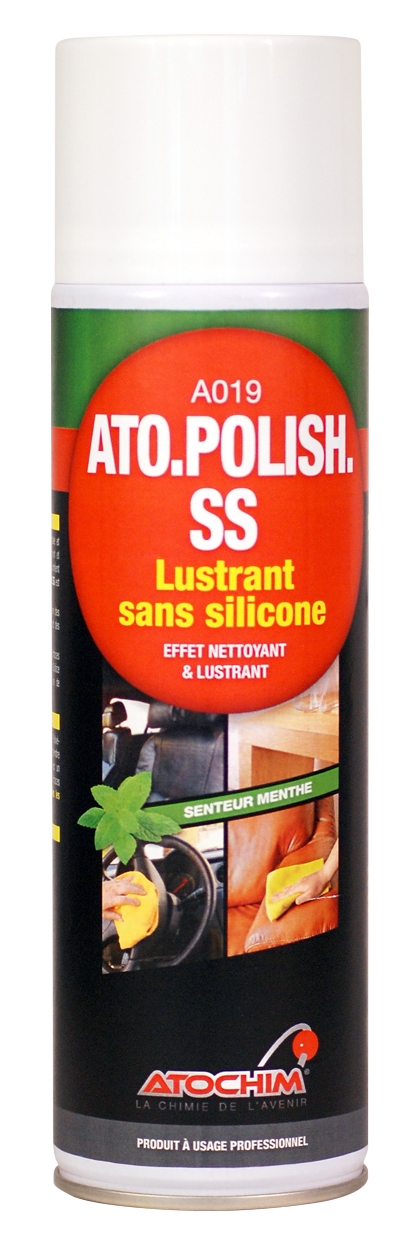 ATO.POLISH.SS est recommandé pour l’entretien des skaïs, meubles vernis et cirés, tableaux de bord des véhicules, surfaces émaillées, stratifiées, cuirs…