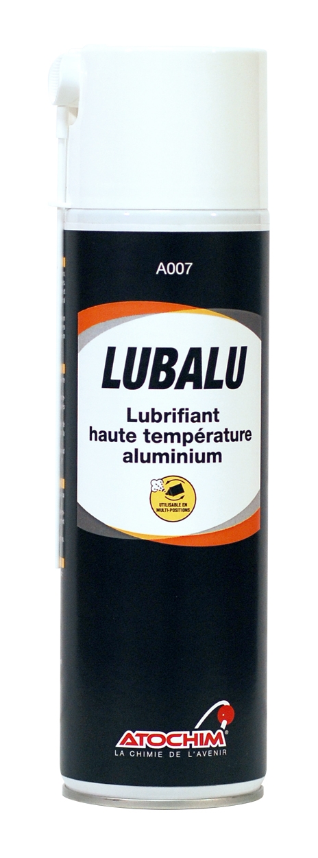 LUBALU est un lubrifiant anti-grippant, anti-corrosion, micronisé résistant à de très hautes températures. Il s’agit d’un complexe de poudre d’aluminium et d’agents extrême pression dans un support minéral épaissi au savon de lithium. LUBALU a été développé pour empêcher la corrosion et le grippage de pièces métalliques assemblées d’origine chimique, atmosphérique ou thermique. Son gaz propulseur est ininflammable.